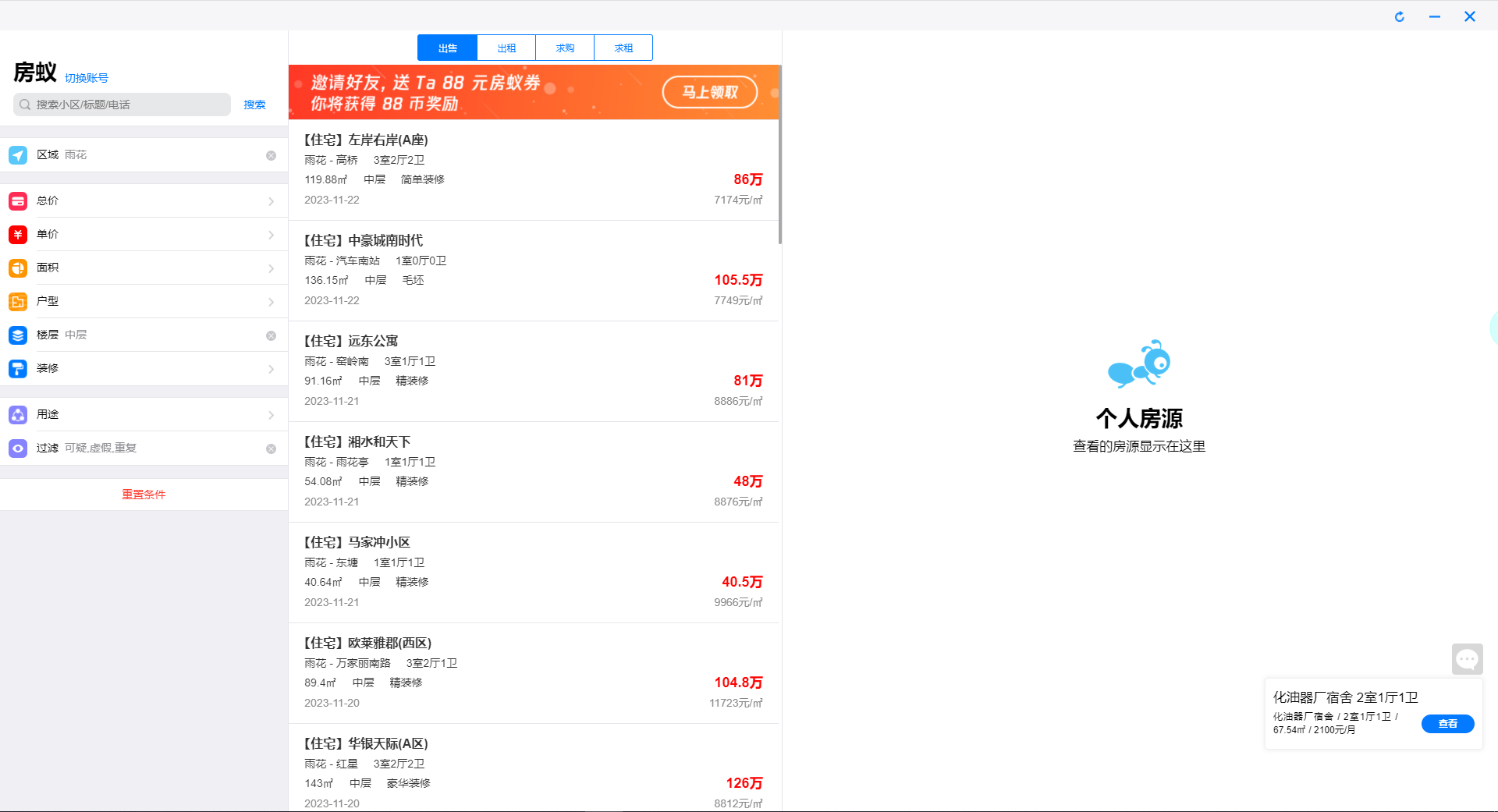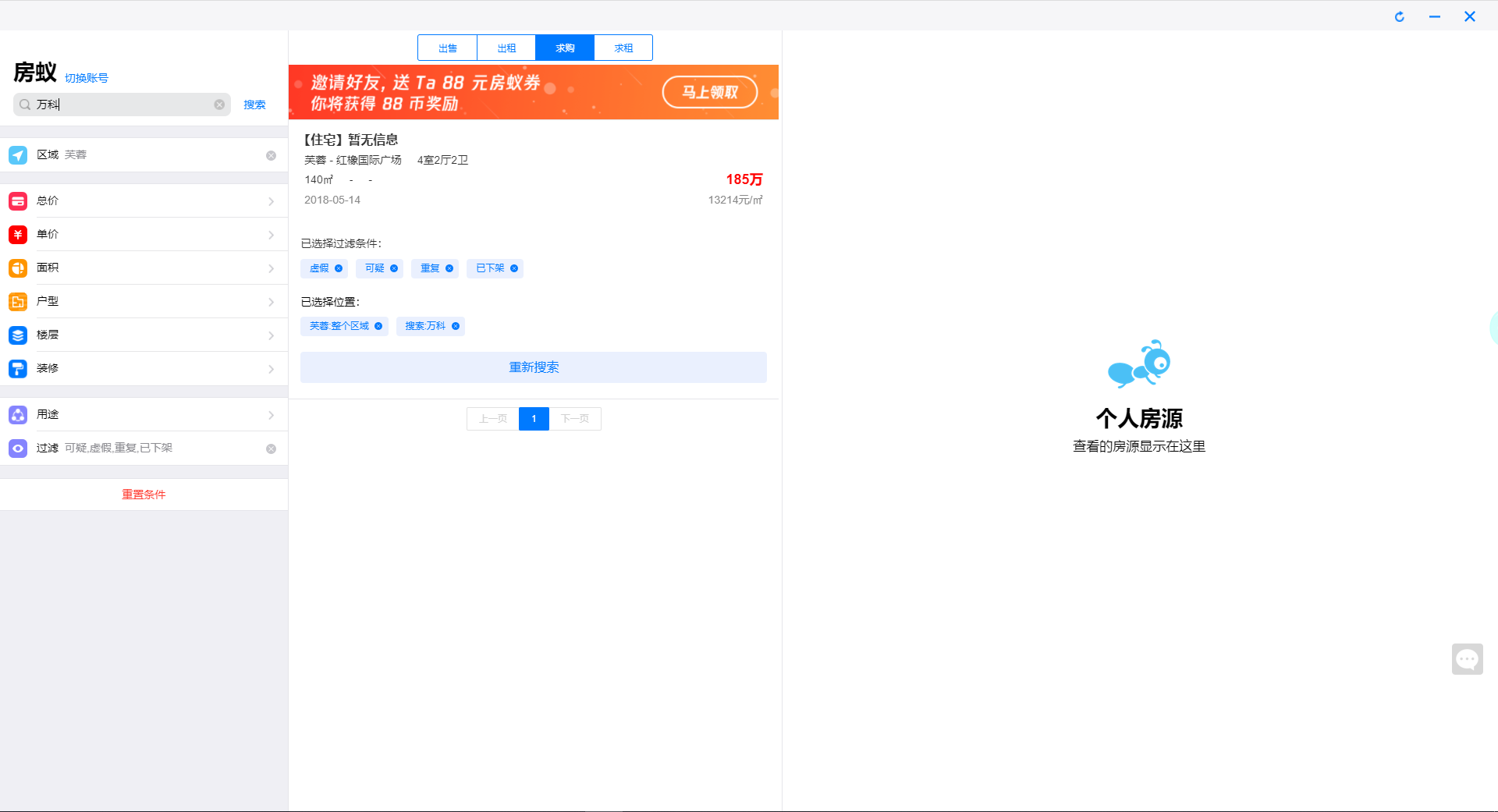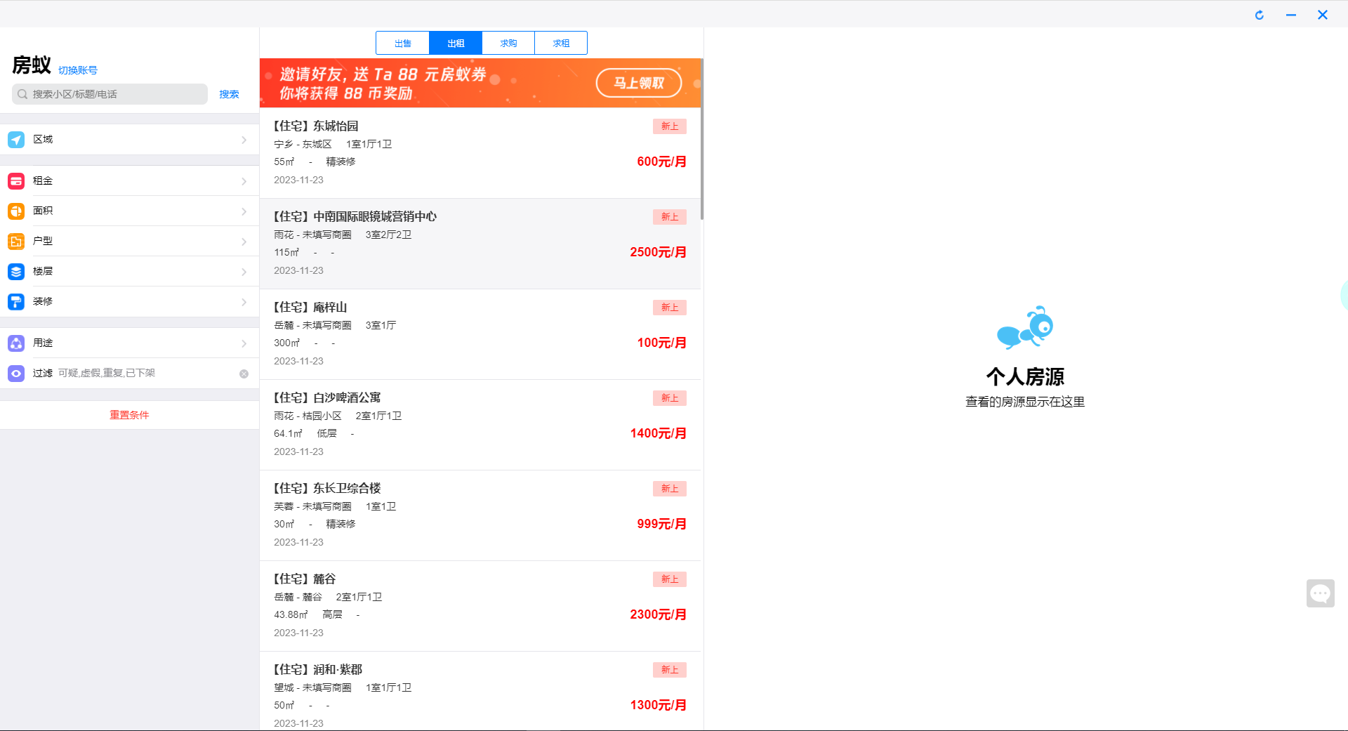 9、还可以通过左上角的【搜索框】输入小区、标题和电话等信息进行搜索,以上就是房蚁电脑版使用教程了。