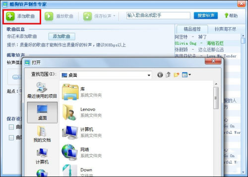 2、点击“添加歌曲”按钮,添加想要制作成铃声的歌曲。