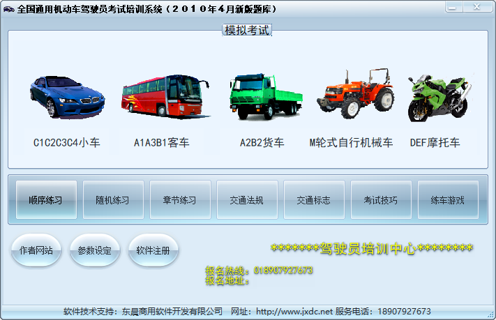 驾驶员理论考试训练系统是由东晨软件出品的一款功能全面,实用方便的全国通用驾驶员理论考试模拟软件,该系统分为顺序练习、章节练习、随机练习、交通法规、交通标志、考试技巧、练车游戏、模拟考试、模拟开车等几大模块,可适用于A照、B照、C照以及自行机械车,摩托车等所有类型的驾照理论考试,功能强大,符合记忆规律和学习曲线,是国内下载量最大的交规模考软件之一,有需求的用户请下载体验!