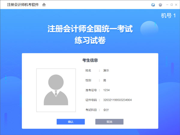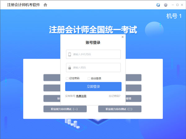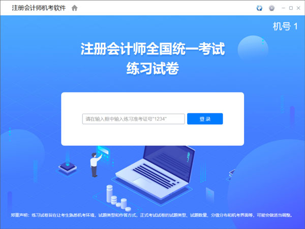 2、以会计为例,输入模拟准考证号:1234进行登录;