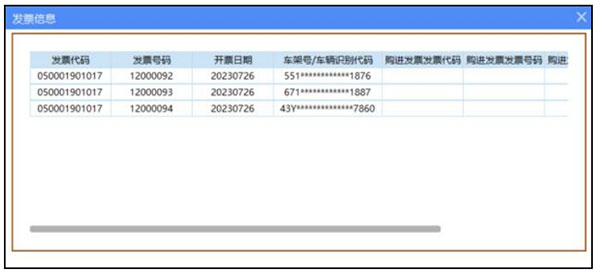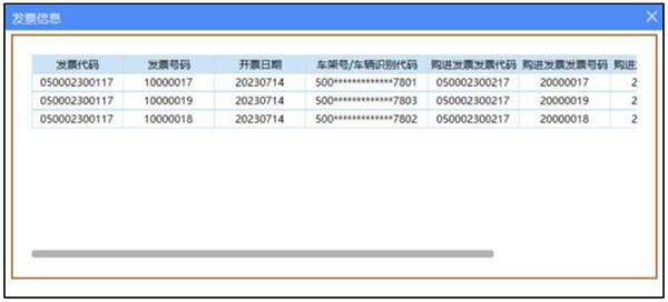 点击“3 份”,可查看所开具的二手车发票信息,如:发票代码、发票号码、开票日期、车辆识别代码(脱敏)等