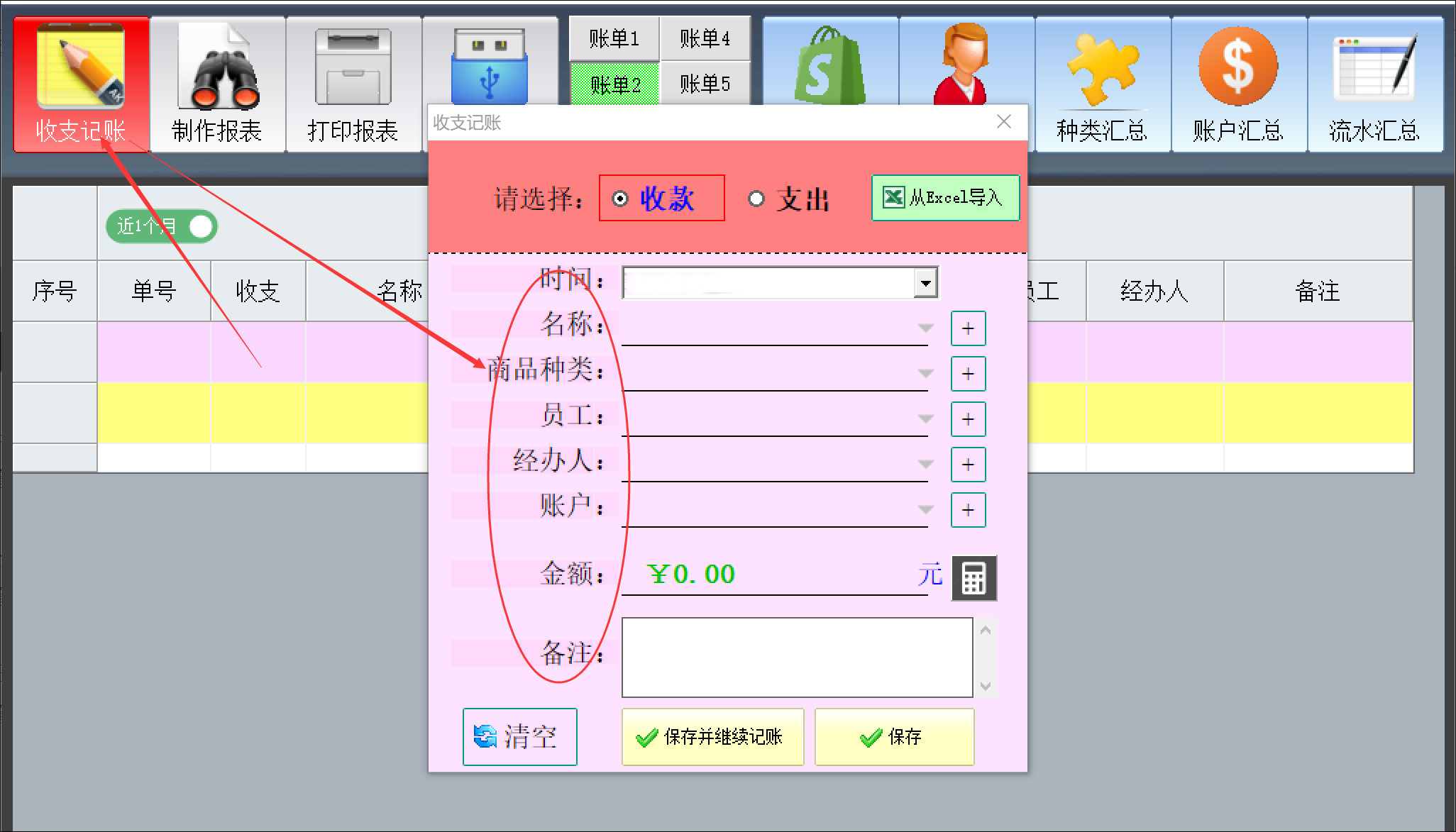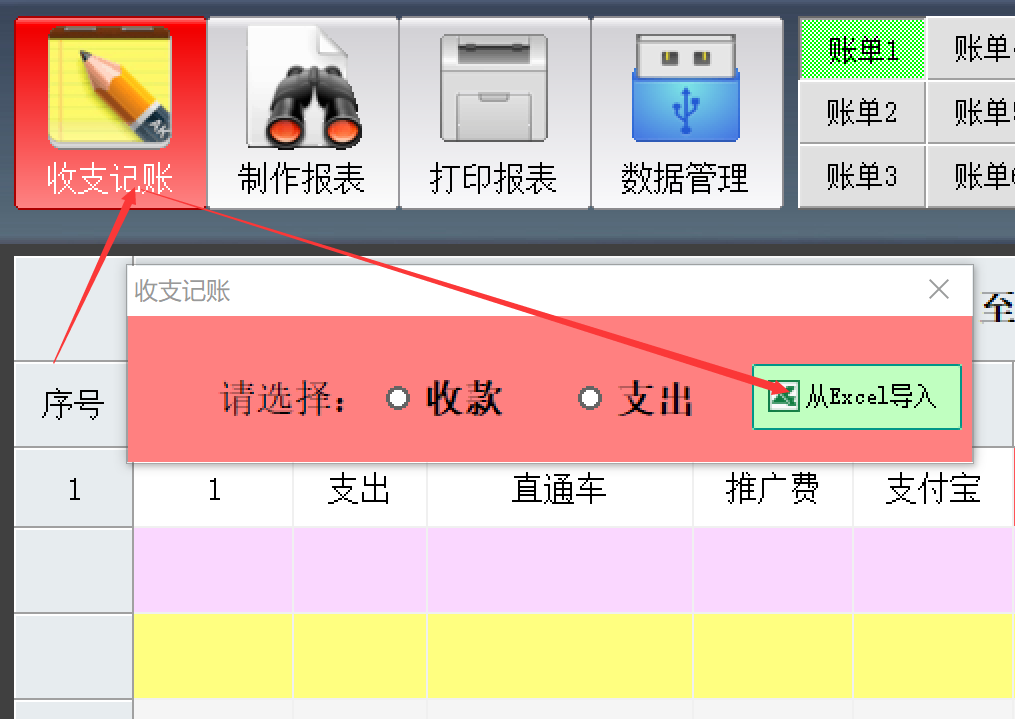 软件上导入步骤:点击【收支记账】-点击【从Excel导入】-点击【打开Excel】-选择对应的【列号】-设置【导入开始和结束行】最后点【确定导入】