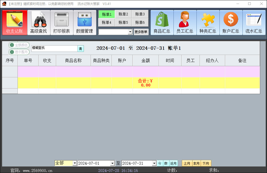 7、支持对流水账进行记录并管理,在此页面实时显示收款汇总、支出汇总等信息;