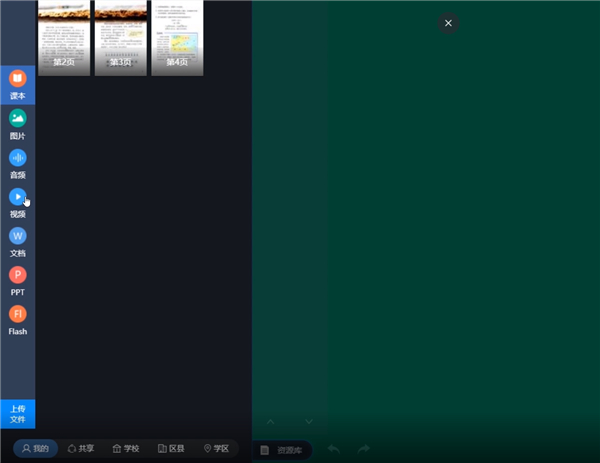 3、里面为教师用户提供了课本、图片、音频、视频、文档、ppt、flash等等课件制作功能;