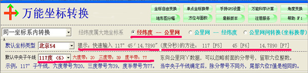 2、可在多套坐标系间进行经纬度与公里网坐标的转换