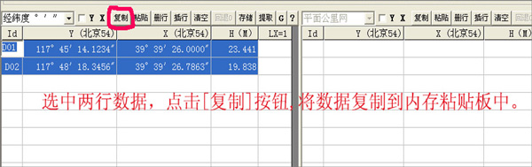 5、选中两行的数据,点击【复制】,将数据复制到内存粘贴版中。