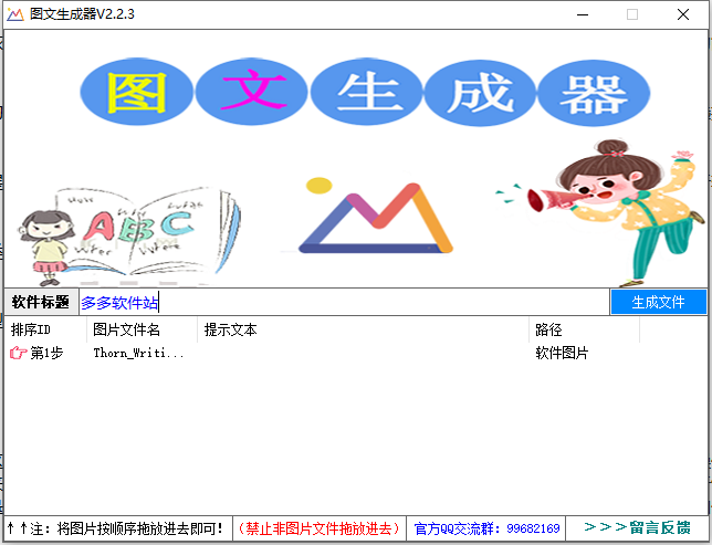 值得一提的是,图文生成器功能强大全面,简单易操作,使用后可以帮助用户轻松的制作图文教程,只需要将图像拖入生产中以生成方便的图文教程,可以按顺序拖放图像,右键单击表项进行编辑,有需求的用户不妨来下载试试!
