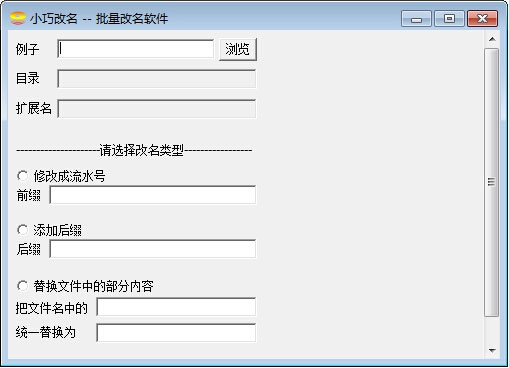 小巧改名是一款绿色免费,简单实用的批量改名软件。该软件只要任意选择其中一个要改名的文件,再选择改名方式,而且它还是纯绿色,很方便携带,并且是完全免费的,可供您放心的使用。它可以把文件名里的某些文字批量去掉或替换,而且界面整洁,操作简单又实用,不需要太多时间,方便又快捷,有需求的小伙伴们可在此点击下载!