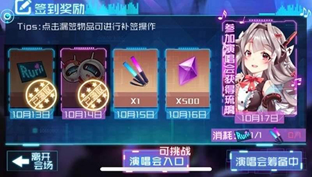 这次的活动相对来说比较简单,在通过一系列的剧情后就会开启演唱会入口,演唱会的握手会是每次消耗一个门票进入的,只要有票就取刷,每次随机掉落不同颜色的应援棒。其他关卡随着时间慢慢开放,每天都有一定的次数去刷,如果战斗力够的话建议挑战难一点的副本,这样掉落的东西也会好很多。特别注意!在副本里除了需要完成的选项,要多注意发光的道具,一般里面都有应援棒或者灵钞,不要白不要。