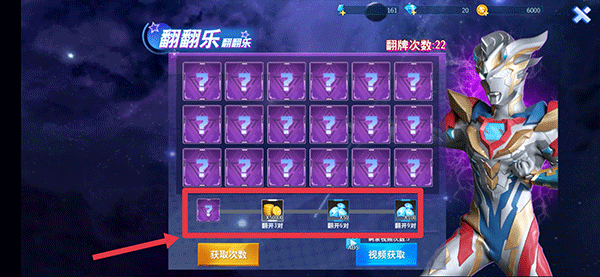 6、另外,游戏右上角还有一个翻翻乐玩法,翻开几对卡牌后就可以获得相对应的奖励。