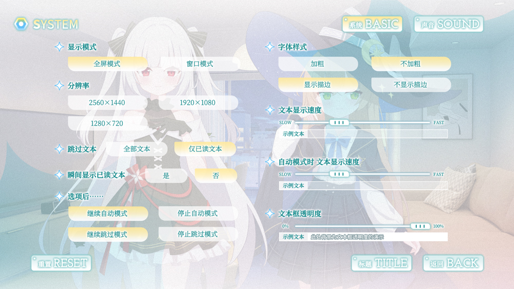 5、另外,玩家还可在设置中调整游戏分辨率,以及字体大小、文本播放速度等。