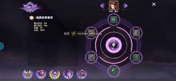 魂具可以通过家族迷宫随机开出,魂具划分7个品质:白<绿<蓝<紫<橙<红<金,其中白色无法升星,其余的均可通过吞噬魂具获取升星经验。