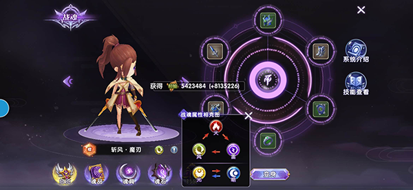 战魂间存在属性克制关系,具体的属性相克图可以参照下图,当前开放的战魂:斩风·魔刃为风属性,而炽焱·1-17为火属性,后续战魂的选择逐渐丰富以后,适当地利用属性克制关系,能够帮助冒险家大人们的实力更上一层楼。