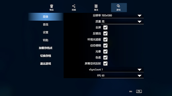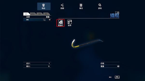 1、点击Esc可以激活物品功能里面有你用的上的道具和设定快捷键