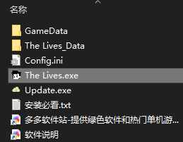 2、接着在解压文件下找到并运行如下图箭头指向的The Lives.exe文件即可!