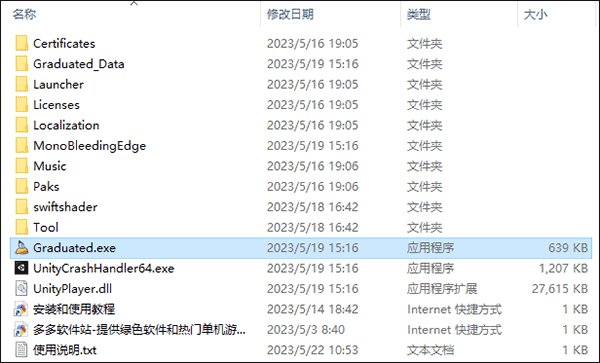 在本站下载解压好游戏后,双击游戏文件夹中的“Graduated.exe”就可以开始游戏了