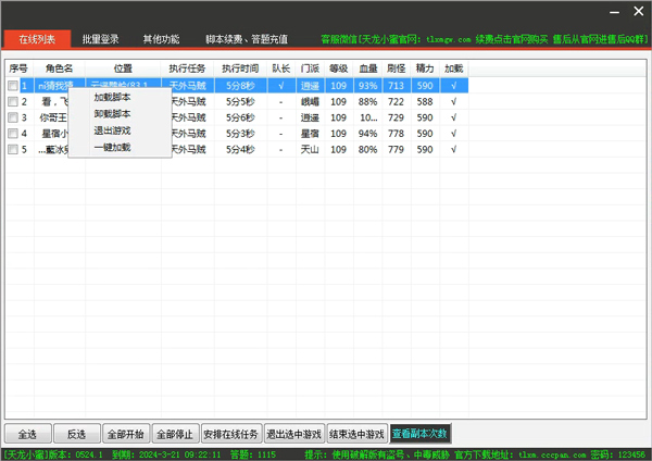 2、全功能无限多开脚本,40元一月(带2000答题)。