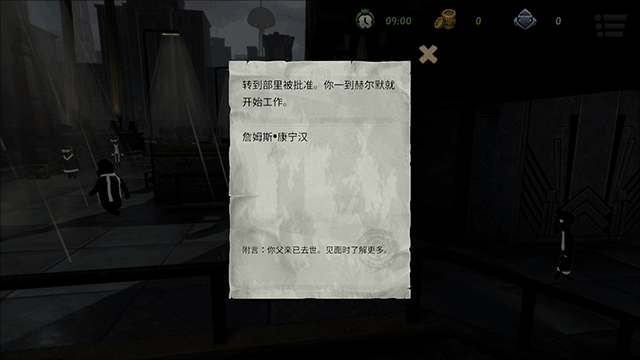 5、在一段剧情后,在这里关闭信件,继续往左边走,推动剧情;