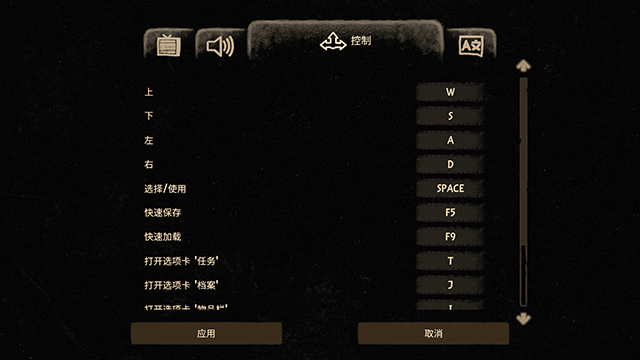 2、在选项设置中控制一栏里,大家就可以对控制按键进行浏览与更换了;