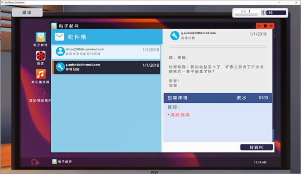 4、在这个模式中,玩家需要根据电子邮件,帮助游戏npc解决他们电脑出现的问题;