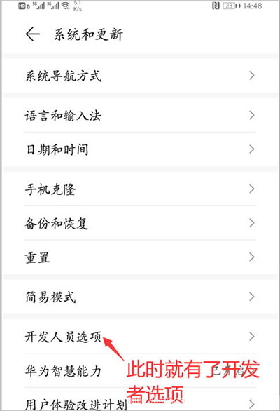 然后就有了开发者的选项;