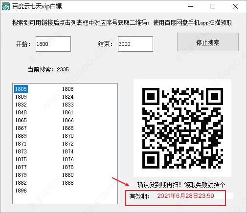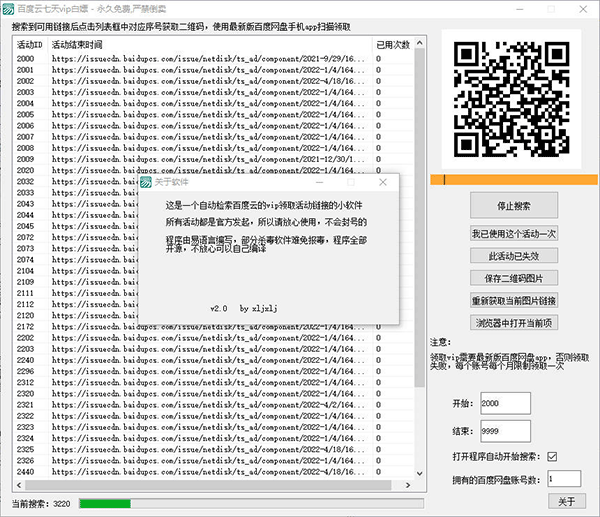 注意:该软件是使用易语言开发的,所以会出现报毒现象,底部显示“黄色横条”的就是有效的活动,通过百度网盘APP扫描活动二维码就可以去活动页面领取会员了!