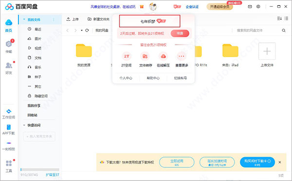 成功领取之后,打开百度网盘,即可看到自己的账号已经是会员啦,可享受21项特权;