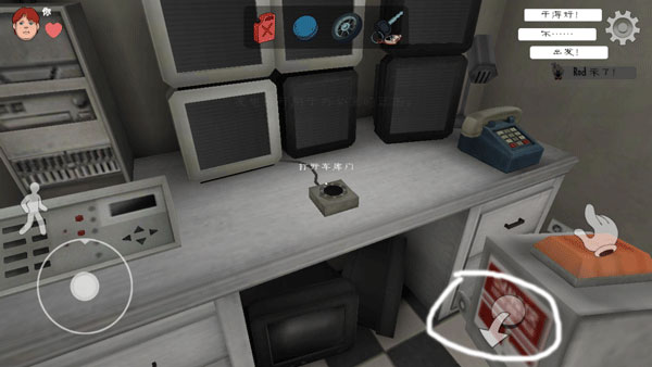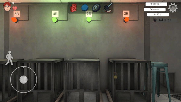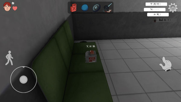 4、玩家需要使用地图中道具逃离这里,点击右边"手"拾取道具,点左边人图标可以下蹲;