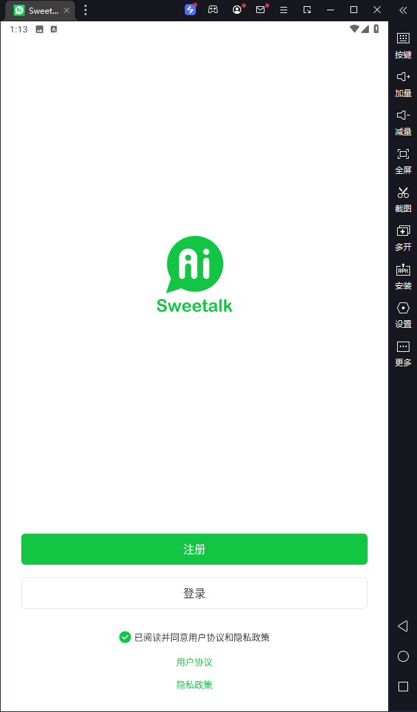 sweetalk电脑版是基于安卓模拟器上运行的一款实时通讯翻译软件,拥有这款软件之后就可以做到打破语言的障碍,让用户可以和其它国家的人轻松沟通聊天,用户发送和接收的消息都会自动翻译成自己设定好的语言,不用再特地去将语言翻译了,并且平台内拥有来自世界各地的用户,你可以根据自己的兴趣和地理位置来寻找合适的新朋友。此外,在聊天方式上,Sweetalk支持一对一私聊以及创建群组聊天,便于与朋友、家人或有共同兴趣的人进行交流,同时还可以在个人主页分享自己的生活动态、照片和视频,让朋友了解自己的生活状态,同时也可浏览他人的分享,增进相互了解。对此有兴趣的朋友们可以来下载体验。