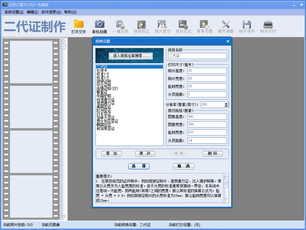 证件照规格仓库