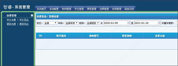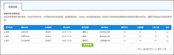 1、选课系统:多年级管理,学生自由选课,有效时间,选课数量,教师多级管理,支持批量入学生信息