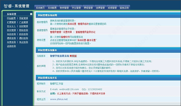3、管理员可以进入后台查看系统全部内容,可以选择配置网站,可以添加管理员