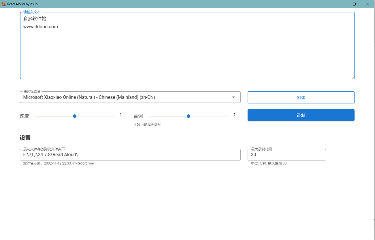 2、可将朗读的声音录制下来