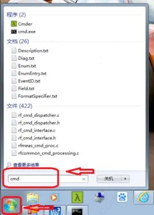 3、点击电脑左下角的“开始”,在命令窗口输入“cmd”,并回车