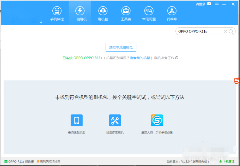 3、连接成功后,自己自动匹配刷机包,或者选择本地自己下载的刷机包(找不到可以去手机官网查找或论坛上找)