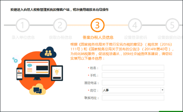 办税人员如实填写姓名、手机号、岗位等信息。