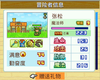 游戏中所有物品都可以作为礼物赠送,送礼后会提升人物满意度2~9点,勤奋度0~6点,数值只跟职业有关。如果想要速通五星,在前期资源非常有限的情况下,性价比尤为关键,如何选择赠送的物品就比较重要了。送礼合适的话,可以让你的人气提升至少快20%~30%。
