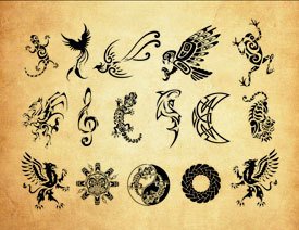 ps纹身笔刷收录了25款不同形状的纹身素材,包括花朵,图案,骷髅头,大蛇,大象,蝙蝠等等,这些笔刷都有自己的特色,可以应用于不同的作品设计中,能够为你的设计图提升品质,欢迎免费下载。