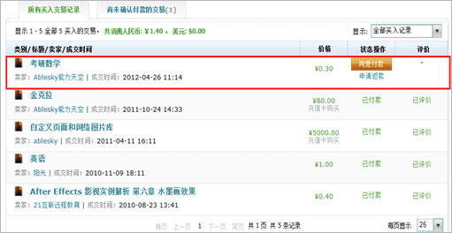 6、购买成功后,学员可以在“我的帐户”-“我的能力空间”-“买入的交易记录”里查看所购买的课程;