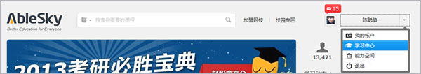 7、之后,进入帐户“学习中心”去观看教学课程。点击“学习中心”;