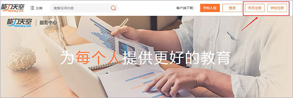 3、若没有帐号的用户,进入官方网站,选择学员注册还是学校注册;