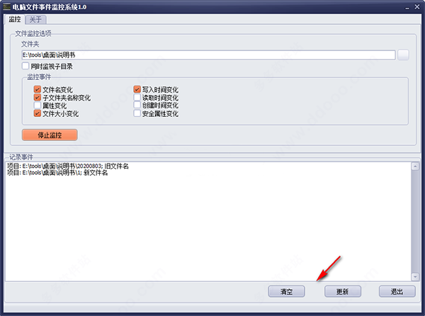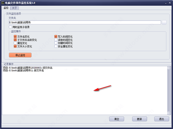 3、选择要监控的事件,支持文件名变化、子文件夹名称变化、属性变化、文件大小变化。