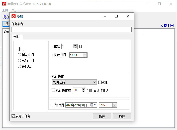 8、添加后的任务可在列表中进行查看,显示执行时间,