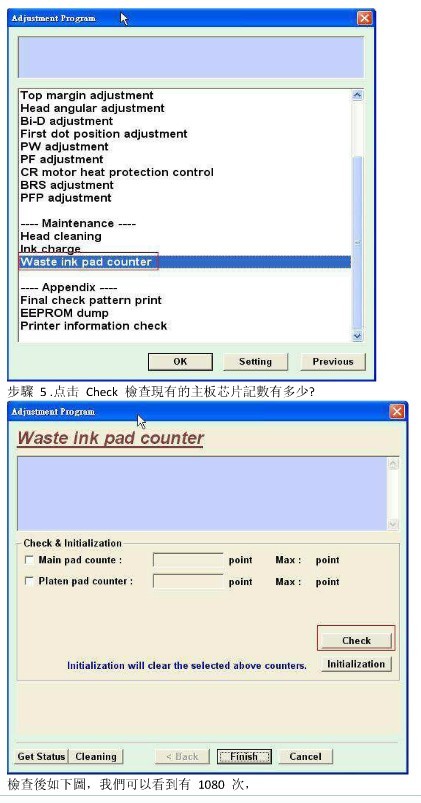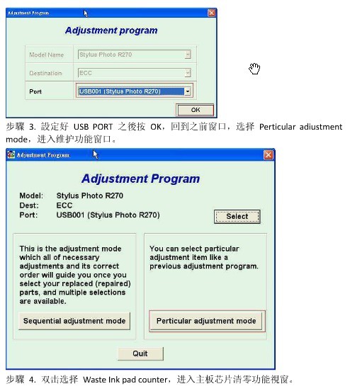 4、回到窗口后,选择“Perticular adjustment mode”,后选择:Waste ink pad counter。