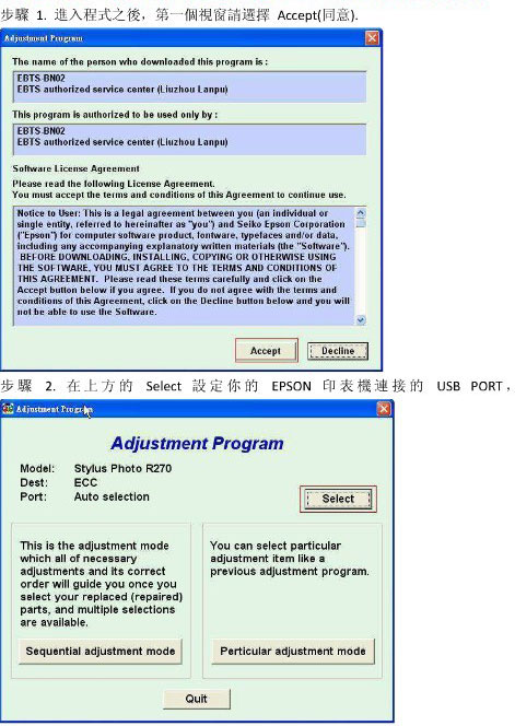 3、进入软件后,选择“Accept”,然后点击“Select”你设定的打印机。