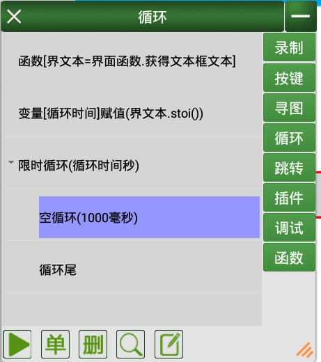 这样在打开的界面内改变文本框的文本,最小化再去点运行,就会执行我们文本框设置的条件了。限次循环也一样。