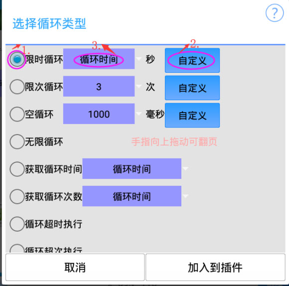 5、可以对限时循环赋值变量了【循环--限时循环--自定义--选择整数变量】;