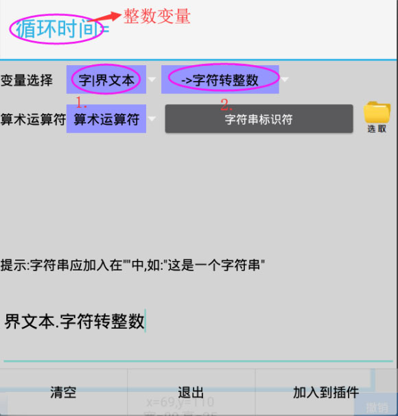 4、由于文本框文本是字符变量,循环语句变量为整数变量,所以我们要创建一个整数变量赋值=字符变量转整数;