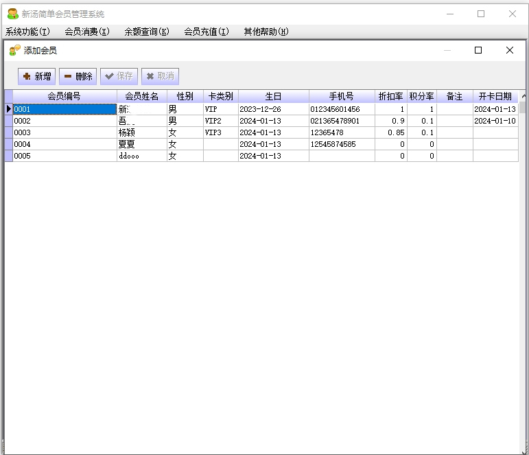 新汤简单会员管理系统官方版是一款功能实用,简单免费的会员卡系统工具,该软件界面简洁,功能方面也是比较传统,可支持折扣卡、储值卡、升级卡和计次卡等多种会员管理功能,可设卡密码,也支持连接磁卡读/写器、POS打印机、钱箱等硬件使用,具有操作便捷,上手简单的特点。如果您需要进行人员行政管理方面的工作,使用这款新汤简单会员管理系统可以让你免费体验到高效严谨的会员充值储蓄等功能的便利性,有兴趣的用户不妨下载体验!