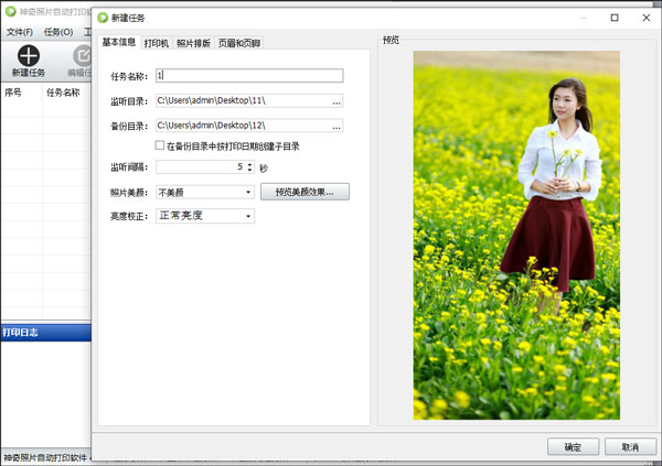 1、点击“新建任务”,命名任务名称,选择监听目录和备份目录,设置监听间隔时长,设置亮度及美颜程度: